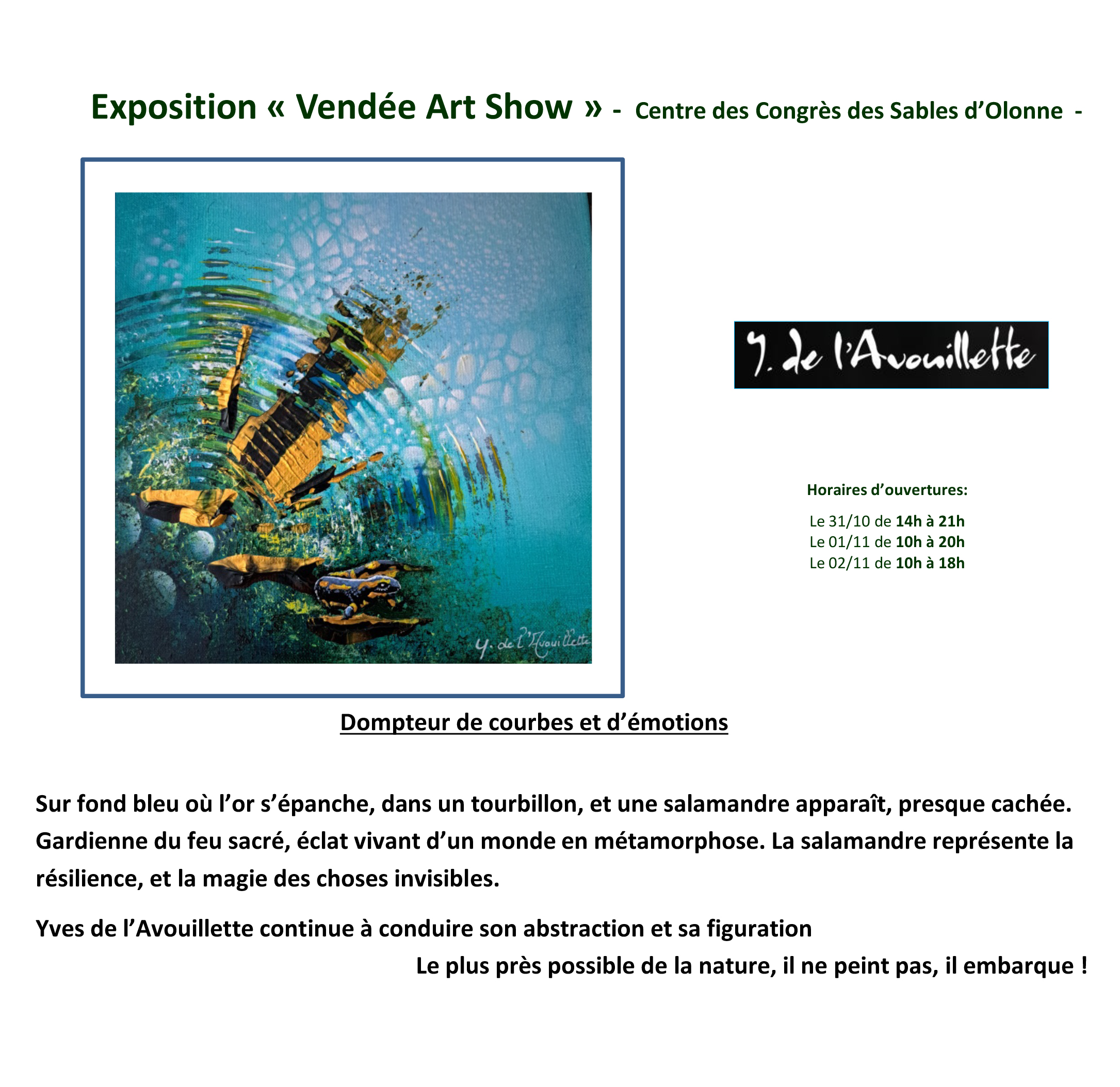 Y. de l’Avouillette au Vendée Art Show du 31 octobre au 2 novembre au Palais des Congrès Casino des Sables d’Olonne